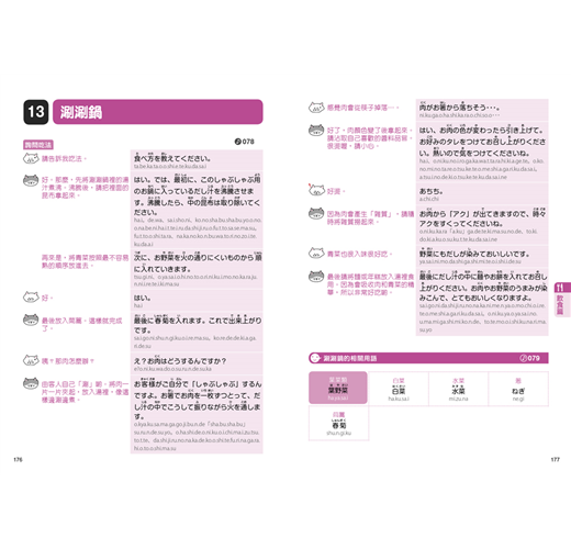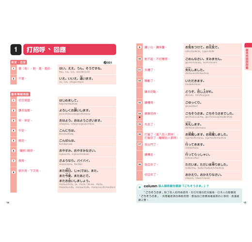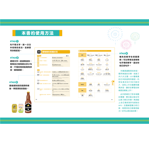 本書收錄了旅遊途中食衣住行各方面最常用的會話及實用單字,搭配上日籍老師錄製的MP3,閱讀、聽力、口說面面俱到。只要反覆練習調整自己的發音、並學習使用的場景和對象,相信下次去日本,你也可以開口說出漂亮又正確的日語!