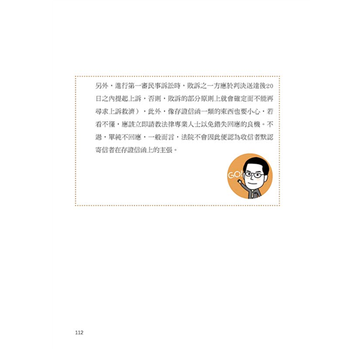 本書擺脫一般人對於法律書籍的冷硬印象,在編排處理上盡量活潑、溫暖化,繪製插圖讓您閱讀起來不枯燥無味,可以將書中所提生活法律內容,完全融會吸收!