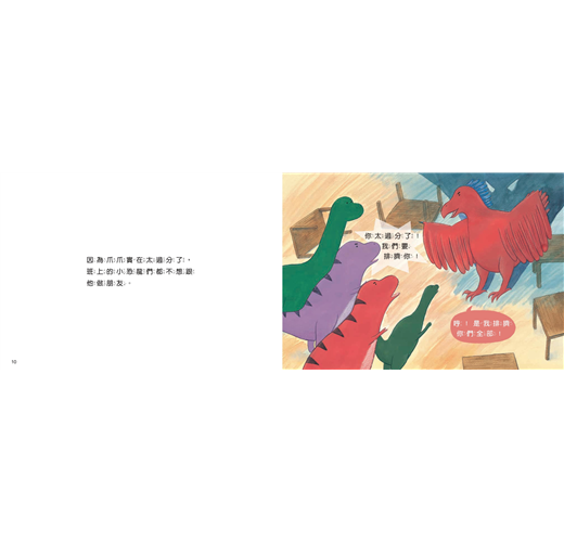 很快的,爪爪就被全班同學討厭了,沒有恐龍想跟他一起玩、也不想幫他的忙。