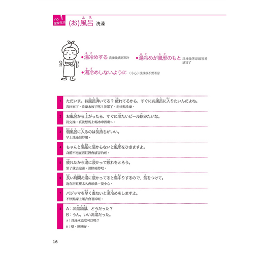 本書涵蓋大部分日本人生活上最常使用的單字以及會話句。舉凡在家、用餐、美容相關、購物、情緒、生老病死、上班、休閒娛樂、節慶,讓你不論是想在日本生活、想和日本人聊天、想聽懂綜藝節目,只要是和日常生活相關都能現學現賣!