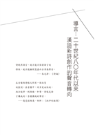 詩歌的聲音指的是語音、語調、辭章結構和語法所生成的音樂效果,透過聲音可以感知詩人的生命氣息。詩人的情緒內蘊著傳統與西方文化資源的魅力,也聯動著時代環境與現實生活的變遷,只是透過聲音形式得以彰顯。本書總覽二十世紀八○年代以來漢語新詩的聲音美學轉向,兼顧詩人楊牧、陳黎、張棗、陳東東、藍藍的個性化創作,又在附錄中結合主題、意象與聲音的關係,試圖呈現詩人為何以聲音抒情、又如何抒情。