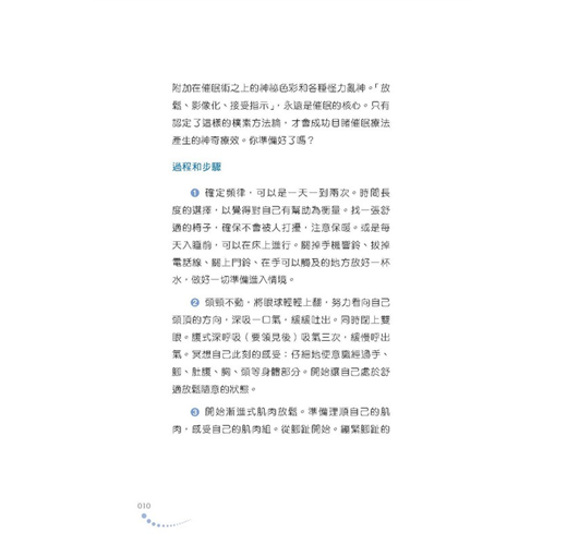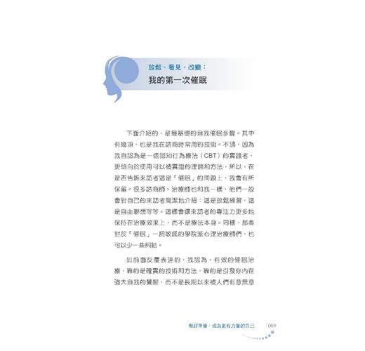 基於這一點考慮,這本手冊中將要出現的所有原創催眠治療腳本,除去完整的腳本文本和錄音指導之外,也會有較詳細的理論分析和技術指導。請務必一起閱讀。希望你能獲得幫助,同時也受到保護。