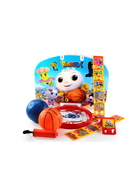 籃球板*1,尼龍網*1,掛鉤*1,升降板*2,打氣筒*1,貼紙*1,兩顆充氣籃球(大小顆)