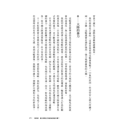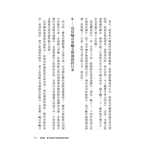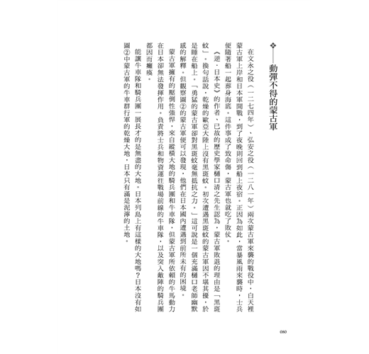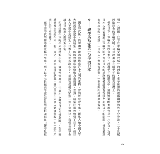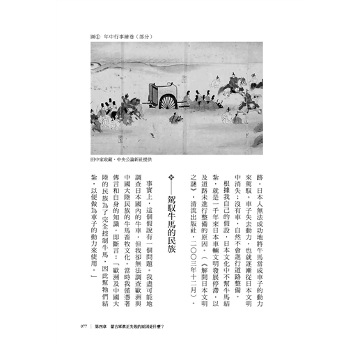 沒有輪式車輛文明發展的日本/視牛馬為家族一份子的日本/駕馭牛馬的民族/大陸的暴力/動彈不得的蒙古軍/布滿「泥」和「綠」的國土/東海道是條海路/泥濘的濃尾平原/八世紀前處於同一陣線的日本和越南