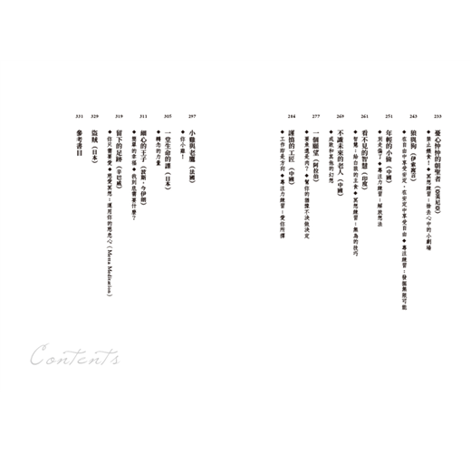 研究翻譯時,深覺原文與譯文的取捨拿捏是門藝術;研究教育後,才知教育方式是影響個人思維的關鍵。譯有:《你不必完美,但可以更有魅力》、《讀懂孩子情緒,100個「聽說問答」關鍵對話練習》等。