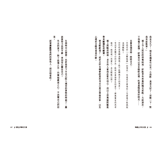 平時別忘了,多抬頭看看天空。很多時候,我們所見,不過是世界的某一個模樣,就是我們眼前那樣(雖然我們常常不自覺)。藉由抬頭看天空,就能擴展你的注意力。你可以透過窗戶看到「一片小小的天空」,就像是故事裡所描述的樣子。如果能在外頭就更好:看看白雲,它們有著不同的形狀和顏色;太陽露臉了嗎?天氣如何?當你放眼望去的時候,會發現自己的思考慢了下來。