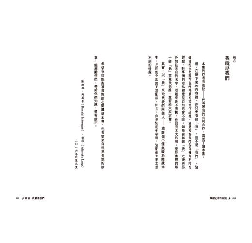 你在封面所看到的作者有兩位──代表著我們共同合作,寫完了這本書。但,在接下來的內容裡,你只會看到「我」,而不是「我們」。這個情況也出現在我們共筆的其他作品裡,這是因為我們各自擁有不同的經歷,對事情的看法和意見自然也會不同。如果在每個「我」之後再另外加註各自的名字,看起來既不美觀,也沒有太大作用。至於書裡的每一個「我」究竟代表誰,就留給大家定奪。