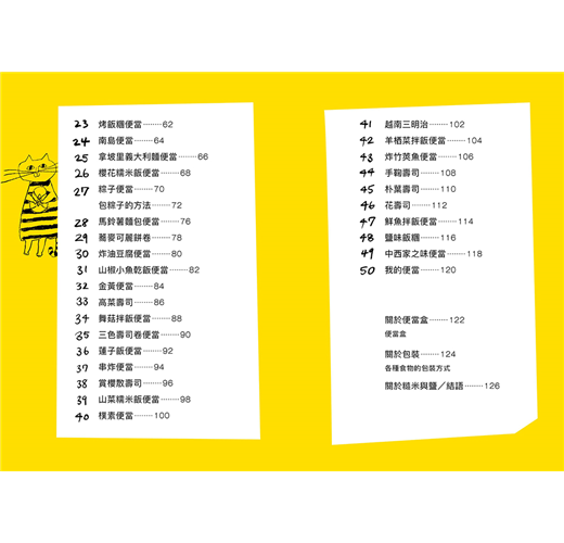 在本書中,旅行餐廳虎斑貓蹦蹦的店主──中西直子,為大家設計了50天豐富又迷人的便當,從超簡易便當、上山出遊便當、工作加油便當、給先生的便當……,在方方圓圓的空間裡,裝載著食材的營養、美味的香氣,還有為某個人料理的心意。