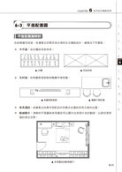 以客廳為例,介紹室內設計平面配置圖的畫法,包括電視牆與沙發區,以及陽台設計,讀者可以3D空間圖對照平面配置,逐步繪製出理想的客廳設計圖。