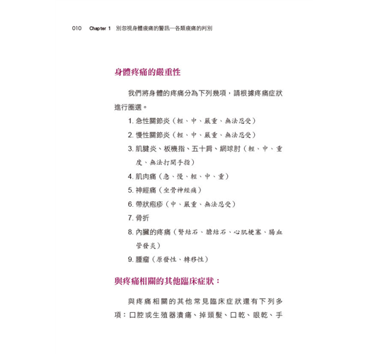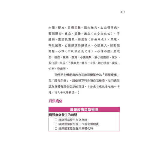 本書針對各類痠痛的判別,讓你及早發現和治療!