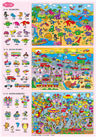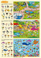 1. 本產品以動物園、農場動物、海洋生物、恐龍、交通工具、遊樂園為塗色主題,讓孩子邊畫圖邊依畫面說故事。