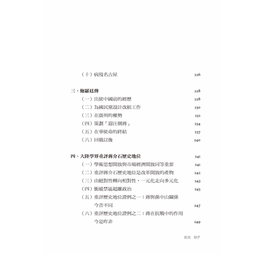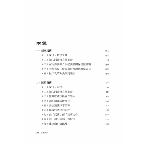 *特別收錄:〈胡漢民傳〉、〈汪精衛傳〉、〈鮑羅廷傳〉與〈大陸學界重評蔣介石歷史地位〉等四篇著作。