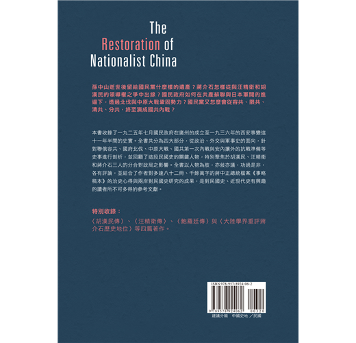 特別收錄:〈胡漢民傳〉、〈汪精衛傳〉、〈鮑羅廷傳〉與〈大陸學界重評蔣介石歷史地位〉等四篇著作。