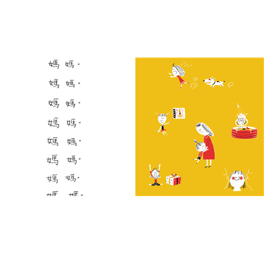 ★ 此書用「媽媽」二字貫串,藉由字的型態與畫面,呈現出孩子對媽媽的深刻情感。