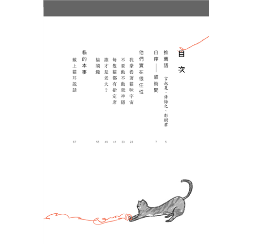 ★宇文正、言叔夏、林水福、林群盛、許亞歷、許悔之、陳雪、黃麗群、楊佳嫻、彭樹君等愛貓名作家聯合推薦。