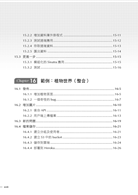 如果粗略地劃分一下,本書可以分為三部分:第1 章至第6 章為基礎工具及架構的介紹,包含Web 架構,資料庫存取層以及一些前端的技術等;第7 章至第13 章是一些程式設計實作和Web 應用週邊的一些工具和架構的介紹,例如如何進行測試自動化,如何進行自動部署等;第14 章至第16 章是一個實際的實例,這個實例從頭到尾介紹了一個Web 應用從想法到實現,再到實際部署在一個真實的環境中的過程,其中包含了前後端開發、自動化測試、自動化部署以及雲端平台的使用。