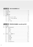 第5 章:詳細討論CSS 架構,包含Foundation 及Bootstrap,討論了兩個架構的版面配置方式、常用的元件等。