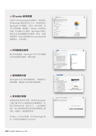 把工作用的檔案有條不紊的整理好是理所當然的,但每當我要翻過去的檔案時,其實很少會在層 層資料夾中翻找,大多是靠著「隱約的記憶」直接把關鍵字輸入 Spotlight 就可以了!如果這樣還 找不到你的檔案,可以參考後面章節介紹的「Finder 搜尋術」,但基本上,90% 找尋檔案的時候, 靠著 Spotlight 就可以快速完成。