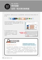 善用Space多重桌面,打造有條理的工作環境/全螢幕+分割視窗,排除不必要的干擾/LaunchPad快速開啟和尋找Apps/通知中心/活用Dashboard增加工作機能/不只能搜尋檔案!Spotlight 加快工作速度/Mac 上的必學熱鍵