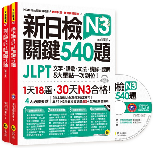 只要一天18題,30天內就掌握日檢N3合格關鍵540題