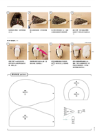 所有作品皆附有實際大小的紙型,只要按圖戳刺各個部位,並依照詳盡的製作步驟一一接合,就能完成比例精準、表情生動的可愛羊毛氈小動物!