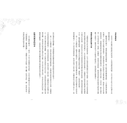 美容煩惱、睡眠困擾、月經失調、骨質疏鬆、更年期問題統統解決!女性的生理週期以「7」的倍數,每隔7年就進入另一個階段。35歲以前是巔峰期,35歲起,身體逐漸老化;42歲開始,健康發出警訊;到了49歲,則正式進入更年期。在這三個「關鍵7年」必須確實做好保養,才不會出現荷爾蒙失調、月經紊亂、慢性疲勞、皺紋色斑、身材走樣等「假性衰老」現象。