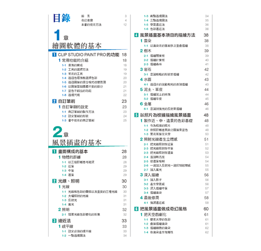 本書的內容涵蓋了用來描繪風景的知識、技巧和創意靈感,以及經過嚴選後的CLIP STUDIO PAINT PRO技巧。想要學會風景插畫並進一步延伸至奇幻風景者,此書乃是您最佳的選擇。