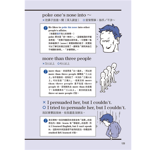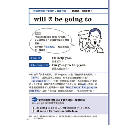 圖解學習充斥的時代,只是乖乖的把萬用句的意思用圖案表示出來,一點都沒有「哏(梗)」的圖解,沒有記憶點,只會看過就忘。但如果只為了搞笑而塞了一堆突兀但不實用的內容,如此浪費讀者的時間,也會對不起讀者想要增進語言能力的願望。本書在這兩個矛盾之間取得絕佳的平衡點。書中所提供的 78 個可套用的萬用句,以及其可運用在各種場合的延伸句,皆搭配生動、逗趣的圖畫,肯定讓學習者們在學習時噴笑而出,萬用句也不自覺地烙印在腦海中。