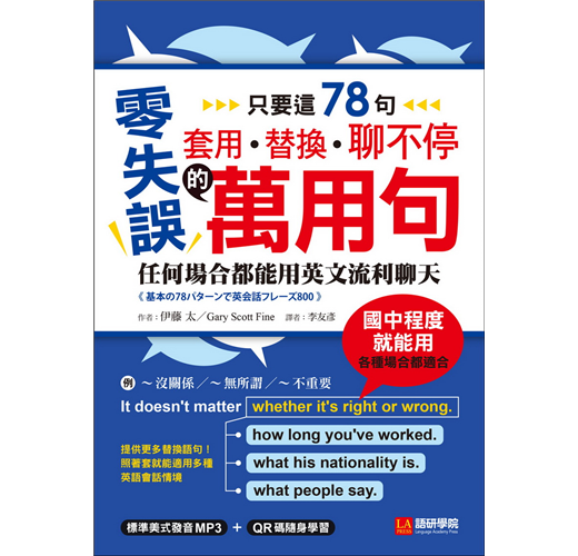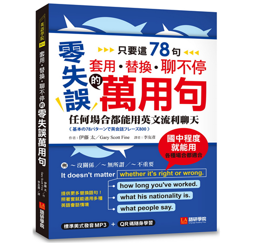 ◆ 利用全書 78 個萬用句,就能延伸運用到各種情境,暢所欲言,溝通無阻礙。