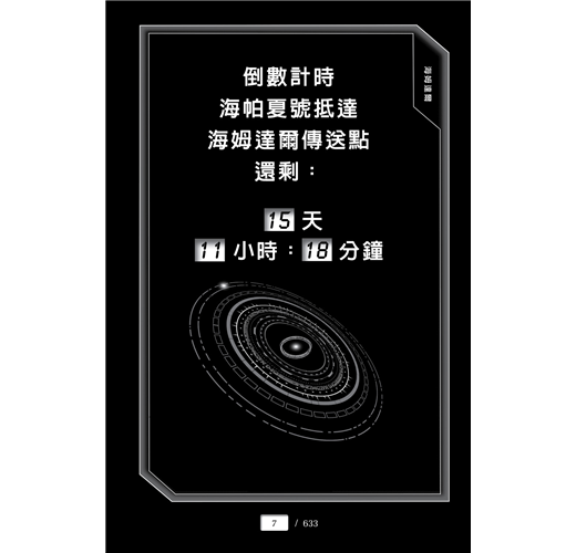 派對正熱鬧,音樂隆隆作響穿透屋頂,燈光秀在我們腳下的塑鋼之間反射。站內員工和一般平民混雜在一起,採冰礦工、殖民地居民和貿易商──差不多所有在大地日還留在站內的人都來了。觥籌交錯。我看見莎拉.麥卡杜溫在桌上跳舞,辛克萊兒和莫力搞了五個月曖昧之後,終於到角落熱吻。萊茲和羅斯一如往常在爭執新的這波法西斯主義可能帶來的危險,而且兩人又喝了幾杯,爭執音量已經開到十左右。溫暖的身軀、微笑的臉龐、開心的笑鬧聲。所有人都如此生氣蓬勃。