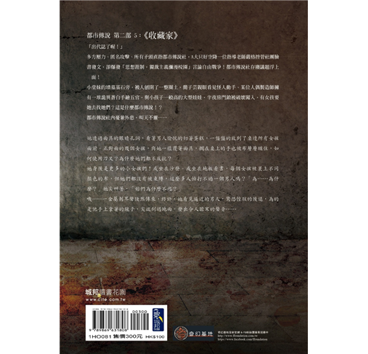 相關著作:《都市傳說第二部5:收藏家(鏟子湯匙版)》《都市傳說 第二部 4:外送(外送必備環保杯套版)》《都市傳說第二部4:外送》《都市傳說特典:詭屋》《都市傳說特典:詭屋(時尚登山頭巾版)》《都市傳說第二部3:幽靈船》《都市傳說第二部3:幽靈船(隨船隨到杯墊版)》《都市傳說第二部2:被詛咒的廣告》《都市傳說第二部2:被詛咒的廣告(神祕燒錄光碟版)》《都市傳說 第二部1:廁所裡的花子(花子貼身小布袋版)》《都市傳說第二部1:廁所裡的花子》《都市傳說12(第一部完):如月車站》《都市傳說12(第一部完):如月車站(如月列車專屬仿舊卡套版)》《都市傳說11:血腥瑪麗》《都市傳說11:血腥瑪麗(美麗隨身小圓鏡版)》《都市傳說10:消失的房間》《都市傳說10:消失的房間(都市傳說鑰匙圈版)》《都市傳說9:隙間女》《都市傳說9:隙間女(隙間女手書籤版)》《都市傳說8:聖誕老人》《都市傳說8:聖誕老人(聖誕蓋布袋版)》《都市傳說7:瑪莉的電話》《都市傳說7:瑪莉的電話(背娃娃束口袋背包版)》《都市傳說6:試衣間的暗門》《都市傳說6:試衣間的暗門(手機置物架版)》《都市傳說5:裂嘴女》《都市傳說5:裂嘴女(裂嘴口罩版)》《都市傳說4:第十三個書架》《都市傳說4:第十三個書架(詭異檀香版)》《都市傳說3:樓下的男人》《都市傳說3:樓下的男人(特別夜光版)》《都市傳說2:紅衣小女孩》《都市傳說2:紅衣小女孩(特別版:溫感現影封面)》《都市傳說1:一個人的捉迷藏》《都市傳說1:一個人的捉迷藏(特別版娃娃3D卡書衣)》