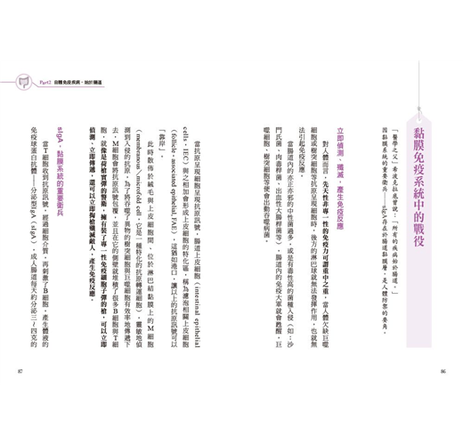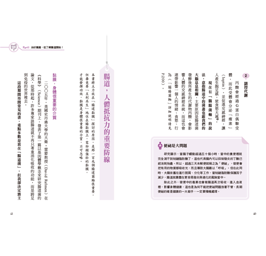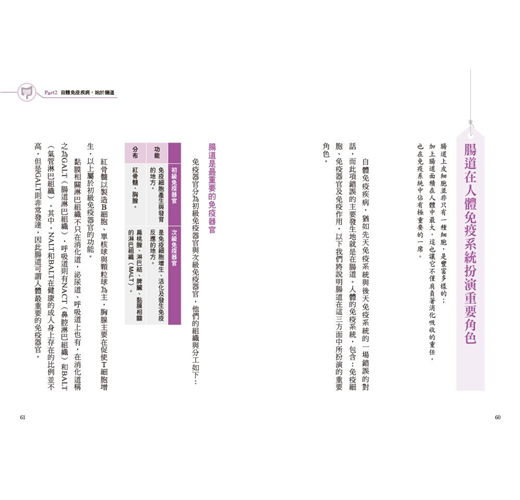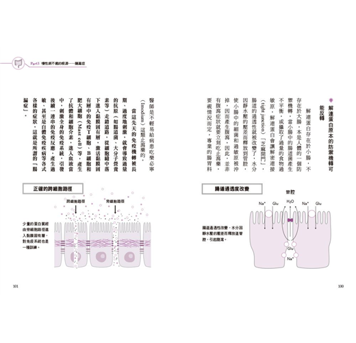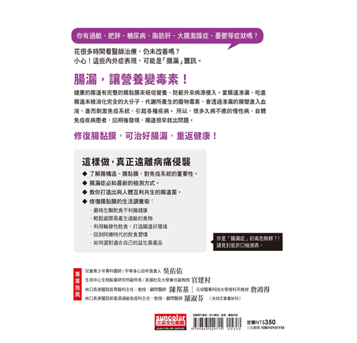 所有的疾病皆始於腸道! 「醫師,三采出版社想邀你寫一本書……」雖然開了一家診所,但奔波於家庭和工作之間的我,診所採預約制,這樣才能善用一天僅僅二十四小時的時間。 我自忖這是一個很可怕的任務,雖然關於「腸漏症」的訊息已經見諸某些書籍,但絕大多數人似乎仍不了解腸漏症是什麼?不了解吃正確的食物(食療)可以減少甚至取代藥物! 我身為消化系專科醫師,又是美國功能性醫學會會員,在診所也總是幫病人調理腸道以對治各種難纏疾病;在臉書與部落格上,也一再對讀者衛教腸道健康的重要,那麼,我是否願意在已經滿檔的生活中,擠出時間寫一本具有教育意義的書?這讓我陷入長考…… 回顧我的醫學養成之路,大學念的是台灣大學農業化學系,念到大四時,我去修了獸醫系賴秀穗教授開的免疫學課程,他是我免疫學的啟蒙老師,本想出國去念免疫學,在出國的推薦函中,賴教授說我是他遇到的Top3的學生,真是受寵若驚! 而後我有幸在已故成大醫學院黃崑巖院長建立的學士後醫學系制度下,考進了長庚醫院學士後醫學系,最後選擇胃腸肝膽科作為主科。但喜歡免疫學的我,為何不走風濕免疫科呢?因為三十年前風濕免疫科可使用的武器實在太少了。 當時醫界女醫師還不多,謝謝長庚胃腸肝單科方昆敏主任給我機會,成為消化系醫學會的一員。因為生為人母才離開長庚醫院,進入一家健診中心,在那裡發現了很多健檢報告全部正常,但自覺生活品質和健康不佳的病人,我相信沒有這麼多的人喜歡無病呻吟,所以在民國九十年九一一事件時,隻身前往美國西雅圖功能性醫學總部上課。 所謂「功能性醫學」,即是在還未產生結構性、器官性的改變,成為臨床上病症表現前,依據生化學、免疫學和營養學等,做進一步更深入的檢查,提前瞭解問題的癥結所在,以貫徹「預防重於治療」的觀念。 回國後,有幸得到中山醫院陳福民董事長的支持,他是一位德高望重、具有先知卓見的醫界大老,在聽完我兩次功能性醫學在腸胃道和肝膽系統的報告後,成立了杏群預防醫學中心,讓我有機會用功能性醫學照顧全人的信念,幫助更多的病人。 爾後我開始照顧自閉症的孩子們,但這並非巧合,因為百分之七十的自閉症患者會出現腸胃道症狀。在二○一○年腸胃和肝臟期刊(JGH)有一篇研究報告指出,自閉症小孩的腸道菌叢和發酵產物的確是與常人不同。 在門診時我常對病患解釋,腸壁就像房子的牆壁,靠近管腔的黏膜層好比油漆和水泥層,上皮細胞層好比磚塊層。如果油漆水泥剝落磚塊裂開,則雨水強風就灌進來了,住在屋內的人們就必須立即起身動作,拿鍋碗瓢盆接水,拿毛巾膠布把縫堵住,就好比黏膜固有層的免疫細胞(T細胞、B細胞、肥大細胞、巨噬細胞、樹突細胞等)全員出動準備應戰。 更可怕的是,補東牆又漏西牆,處處崩裂樓就塌了,人就生病了,戰爭要拉到什麼層級?身體能否儘快恢復,就看體內生態系(菌腸腦軸)能否儘快恢復平衡,而其中的關鍵就是免疫系統。 我終於下定決心寫此書!希望藉此書傳達的是,消化道絕對不只負責消化和吸收,長達九公尺的腸道是由好幾個結構和功能專一的段落組合而成,為了維持每一段腸道的平衡,有不同的黏膜和上皮細胞及特化的免疫細胞!而腸神經系統有五億個神經元之多,稱為第二個大腦,整個消化道的神經傳導物質和荷爾蒙的分泌經由菌-腸-腦軸影響了人的情緒、食慾和睡眠。所以,醫學之父希波克拉底(Hippocrates)早在西元前三世紀就曾說過:「所有的疾病皆始於腸道。」 因此,腸道的保健真的很重要,請翻開《身體不健康,腸漏先知道》,好好對待自己的腸道,就等於保健康。