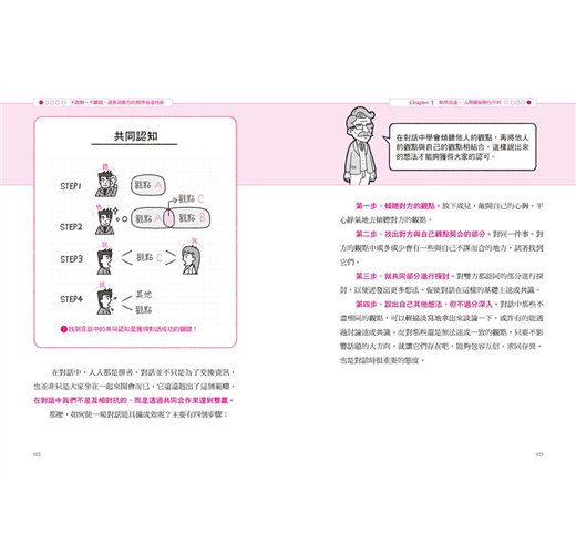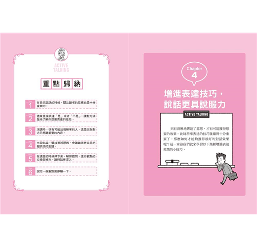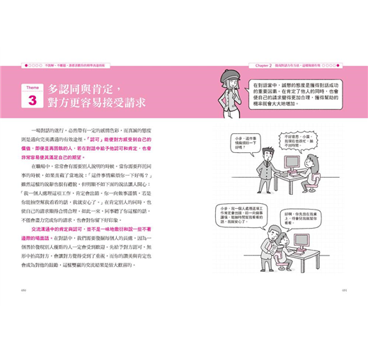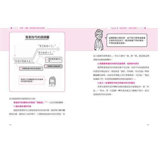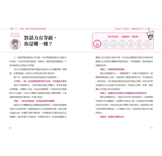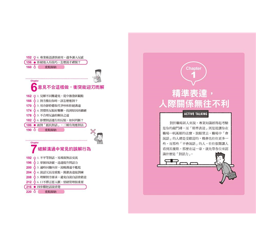 這本《不誤解,不離題,誰都喜歡你的精準表達技術》把說話時會用到的招數整理成49招,並且使用圖解的方式,方便閱讀,若能一一練習、內化,熟悉它,才能有能力見招拆招、臨危不亂、處變不驚,每個場合都能hold得住!