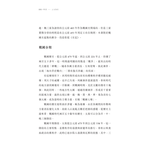 為了增加生動性、可讀性,作者儘量選擇對某些有意義的人和事加以細講,如對某些重大的出土文物的介紹評說,對懸而未解的疑問加以釋惑,對後人誤傳誤解的問題予以糾正,對某些典故加以分析,對某些神話傳說進行詮釋。在圖表上儘量做到隨文佐證。在每冊圖書之後增加附錄,旨在增強學術性和通俗性:附錄「大事記」,旨在對本段重大歷史事件有個大致了解;附錄「帝王世系表」,意在對本朝創業、守業和虛位之王的傳承有所知曉;附錄「主要參考書目」,目的在於提供進一步學習本段歷史的索引。