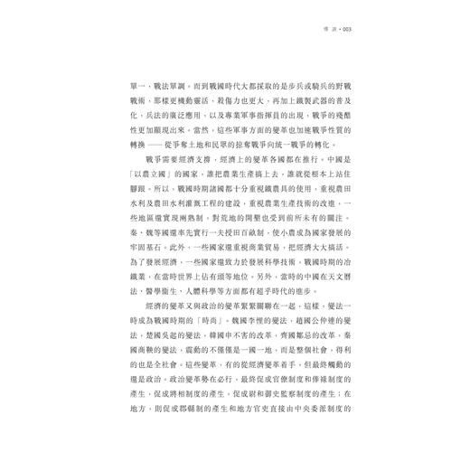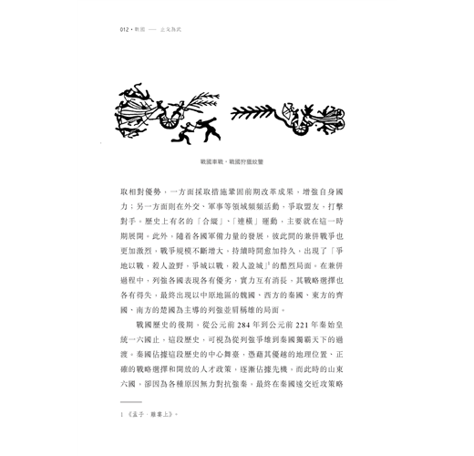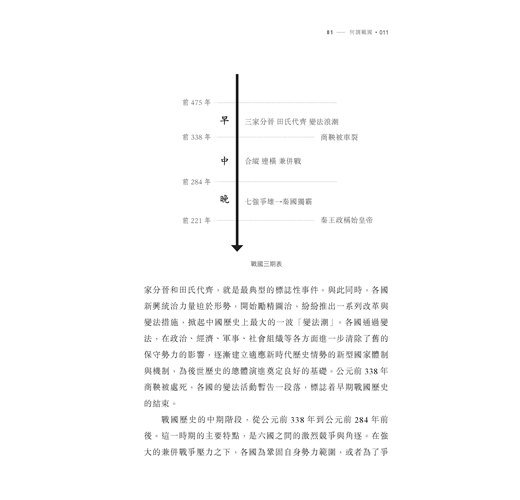 春秋一百多國,經過不斷兼併,戰國初年,餘下十幾國,而秦、魏、韓、燕、趙、齊、楚成為其中佼佼者,號稱「戰國七雄」。諸侯爭霸,直接的比拼是戰爭,攻城掠地,流血漂杵;背後的較量是國土、人民、積蓄、人才等綜合實力。為了求取生存以及奪得最終勝利,各國爭相變法,更新政制,發展生產,招徠民心。止戈為武,大打出手是為了止息鬥爭,這也是人類社會的弔詭。
