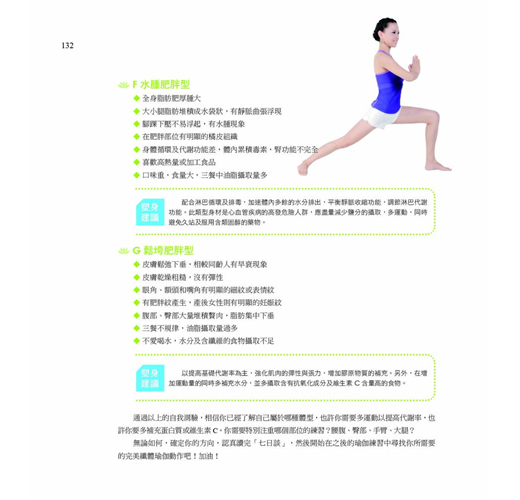 妳是哪種體型,是什麼原因讓妳身材走樣?找出原因才能對症下藥,讓老師以輕鬆的文風,針對各項身材問題給予最專業的建議。