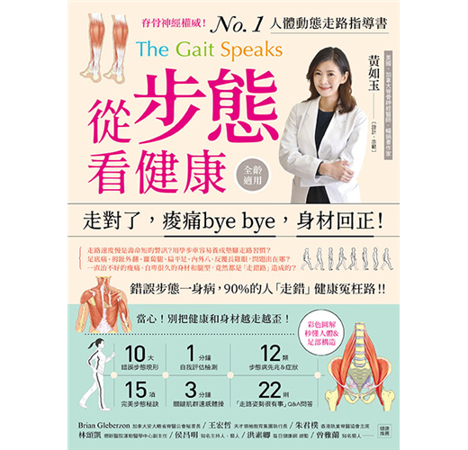 黃如玉醫師是台灣少見擁有美國及加拿大脊骨神經醫學執照的醫師,回來台灣為國人服務已經近十餘年,由於受過有別於中西醫和民俗整脊等的脊骨神經醫學的專業訓練,以及更重視「看人,而不只是看病」、「從細微處找出病痛根源」……,這些早已成為她的本能直覺反應了;也因此,看到紐約客的大步快速疾行、日本女子的內八步態,甚至觀察到台灣人走起路來會搖搖擺擺的、每一個步伐都很重、挺出啤酒肚走著、彎腰駝背的、低頭滑手機的……,這些錯誤的步態不只透露了身體正在發生的問題,也是導致許多人長年腰痠背痛、身型走樣的真正原因。