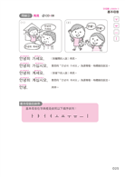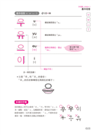 學習發音需要循序漸進,本書字母篇的每個單元皆說明書寫筆順、發音方式,並提供讀寫練習及簡單問候語。說明發音方式時,會點出各字母的發音要點,例如發「의」時要注意將嘴唇往兩側拉。而韓語子音會根據在字母中擺放的位置,區分出基本發音及收音兩種發音,本書也ㄧㄧ標示各子音的不同發音。