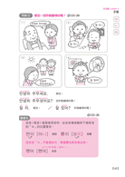 開口說韓語前,必定要先學習發音。本書將韓語字母分成14個單元。在母音部分,會先以具故事性的四格漫畫來介紹,例如學習「ㅜ,ㅠ,ㅡ,ㅣ」的發音時,能看漫畫中的小女孩指著「那個(이)」「牛奶(우유)」,發出「ㄜ(으)」的聲音來表示想吐。學習發音的同時也能背下單字!而在子音部分,會一起介紹外形相似的字母。韓語子音中有「平音、激音、硬音」,外形及發音都極為相似,例如「ㄱ,ㅋ,ㄲ」、「ㅂ,ㅍ,ㅃ」、「ㄷ,ㅌ,ㄸ」等皆由同一個平音衍生出來。本書打破先學完基本子音,再學激音、硬音的傳統方式,直接將三種子音放在一起相互比較,避免學了衍生出來的字母,又忘了前面學過的基本子音。