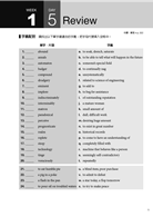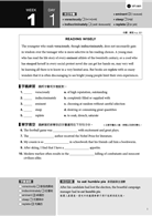而讀者如何確認他從文章中所推論猜測的字義是正確的呢?接下來就要做兩種字義的練習。英文原版書是先做「單字填空」(Sample Sentences)、再做「字義練習」(Definitions),但這樣順序的缺點是在尚未確定這5個新字的字義前,就要在5個句子中填空,不僅較為困難,而且只要錯一個字而不自覺,就很容易造成其他字的連鎖錯誤,導致學習挫折。因此眾文的編輯與筆者再三討論後,都認為讀者應先做「字義練習」,確定猜測的字義之後,再做「單字填空」進一步練習新學的字彙,這樣的順序比較符合認知心理習得字義的過程,因此調整了原書的架構。此外,每日的學習最後還附上「本日片語」和英文版沒有的中文「字義確認」,顯示本書編輯的貼心之處。而讀者做過每日的短文閱讀和單字練習後,再加上每週複習和總複習等多元活動,循環不斷應用所學的新字,同時強化閱讀能力,即可達到深刻記憶和熟練使用的效果。