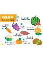 這是一本互動學習的認知書,書裡有很多圖案精美的按鍵:早安、午安、您好,當孩子用手觸摸圖書時,英文或中文的聲音出現了。好多圖案都可以按一按、發出可愛的聲音,認識好多蔬果花卉、動物、鳥類、食物、交通工具和鋼琴鍵盤,讓小孩玩得開心。容易操作也可以連續播放中文或英文詞語。