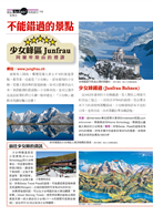 【觀光篇】來到瑞士旅遊的人,大多數都是想欣賞美麗的湖光山色,可是在眾多的景點當中,哪些是最值得造訪的呢?本單元依熱門程度,以星級排序的方式將重要景點介紹給各位,並且企劃另類玩法,介紹水上、雪地等不同的玩樂方式,保證讓你回味無窮!