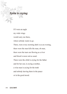 誠如詩人艾薇拉.辜柔維琪在自序內所言,「世界告訴我們,人類歷史不斷重複,沒有什麼改變。然而,在我們目前經驗的人類苦難歷史中,發生奇妙的事。」詩人能夠凝視在世界遭受到苦難的人民,顯示她立足在人道立場的基點,從事詩創作。