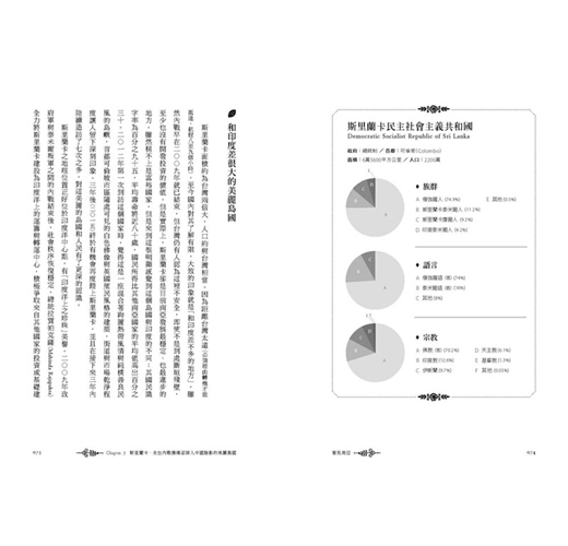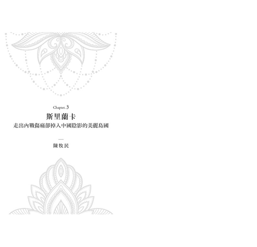 斯里蘭卡不愧有「印度洋上的珍珠」之美稱。她是目前南亞地區發展最穩定、最進步的地方:識字率95%,平均壽命近八十歲,國民所得比該區其它國家的平均值高出30%,跟印度或其它南亞國家很不同!陳牧民的「走出內戰傷痛卻掉入中國陰影」,是根據2015年以來數度前往當地的調查報導所寫成,包括在二十六年內戰期間被叛軍長期占領的北部地區現況,2015年總統大選之際與之後的戲劇性發展,以及中國在斯國的布局。這些一手資料,串起斯里蘭卡如何從內戰廢墟站起,對未來的期待,同時與大國周旋的精彩故事。