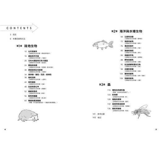本書從生活周遭的生物,到動物園及水族館的人氣動物們,