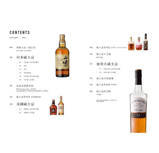 單一麥芽威士忌、調和式威士忌、波本威士忌等等,