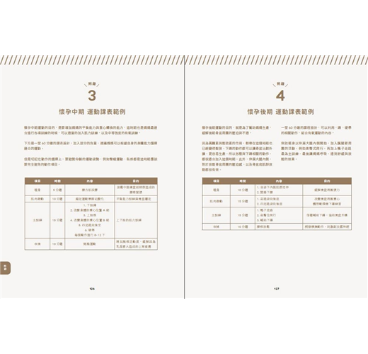 2. 隨書收錄:懷孕初期~後期運動規劃課表範例,專業教練或一般讀者皆可參考適用。
