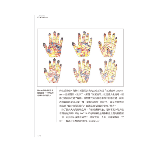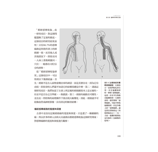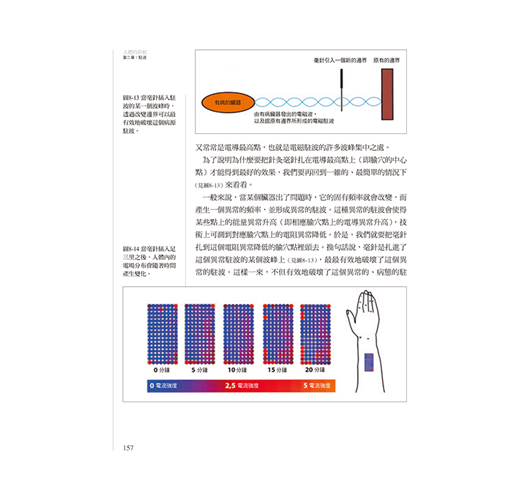 本書內容多元豐富,適合各行各業的讀者。對於中醫師而言,最關心者仍是經絡的相關議題。在第二部第二章「經絡的現代科學研究」中,討論許多針灸特有的現象,包括: