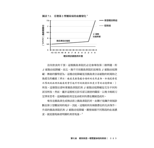 我們一直以來都有類似的直覺。然而僅是飲食和生活習慣的改變(不需要藥物)就能逆轉這種疾病,而其中的原因竟只是因為第2型糖尿病基本上就是一種膳食性疾病。其中最重要的決定因素當然是減肥。用來治療第2型糖尿病的多數藥物都無法使體重下降。舉例來說,胰島素反而是體重增加的罪魁禍首。一旦第2型糖尿病患者開始注射胰島素,他們通常會有種走上不歸路的預感。