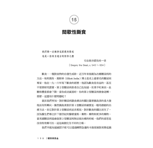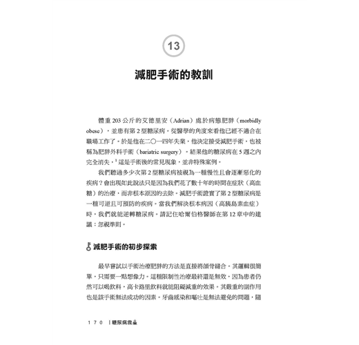 ◆如何有效治療第2型糖尿病,先從減肥手術的角度切入,再提出低精製碳飲食與間歇性斷食可以有效治療糖尿病。